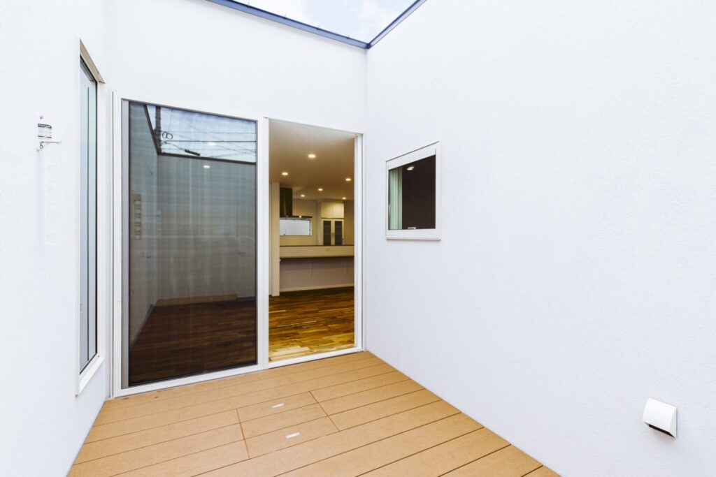 たとえばウッドデッキやタイルデッキ。一般的には外構工事に分類され、予算を計上する対象になる工事ですが、中庭がある家でそのスペースにデッキを施工する場合は、建築工事に含まれることもあります。この違いだけで50〜100万円程度、建築費と外構費の配分が変わってきます。